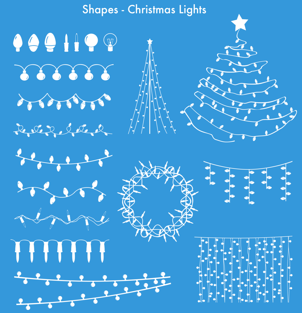 Shapes - "Christmas Fairy Lights" contains 20 great fairy light shapes to use in your holiday designs.