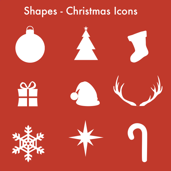 Shapes - "Christmas Icons" contains 9 simple icons to use in your holiday designs.